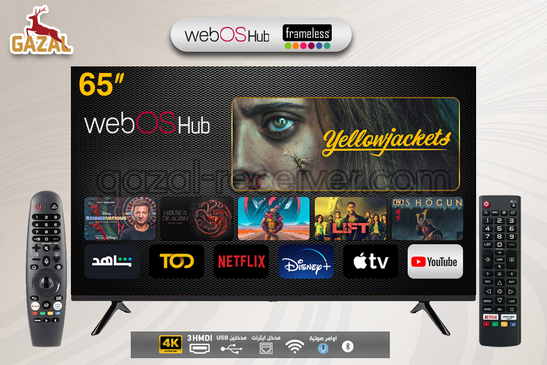 في الصورة مواصفات شاشة الغزال GA50TUG بحجم 50 بوصة، والمواصفات كما يلي: العلامة التجارية: GAZAL الموديل: GA50TUG المقاس: 50 بوصة الدقة: 4K Ultra HD نظام التشغيل: Android 14 الذاكرة: 1.5 جيجا رام + 8 جيجا تخزين داخلي الذكاء الاصطناعي: ThinQ AI الاتصال: Wi-Fi مدمج التحكم الصوتي: Voice Remote (ريموت ذكي بالصوت) الزجاج: Double Glass (زجاج…